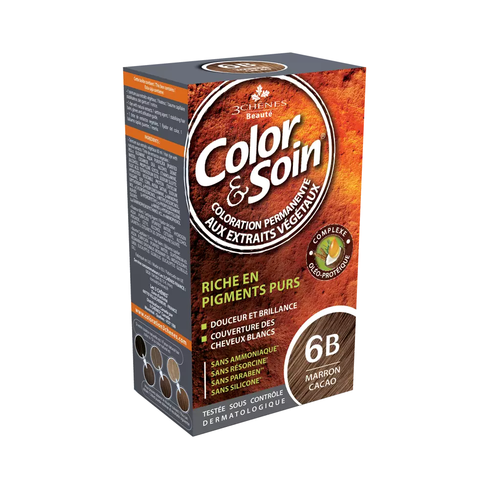 Color & Soin - trwała farba do włosów, która już od pierwszego użycia barwi 100% siwych włosów, a także chroni je i pielęgnuje. Została przetestowana w ramach kontroli dermatologicznej. Produkt został opracowany z uwzględnieniem natury włosów, minimalizuje podrażnienia skóry i ryzyko wystąpienia alergii. Ponadto, dzięki białkom roślinnym i olejkom eterycznym, Color & Soin powoduje, że włosy błyszczą, są puszyste i miękkie.