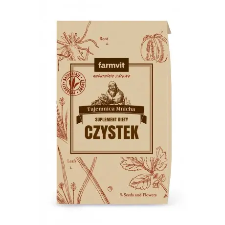 Czystek firmy FARM-VIT jest szczególnie bogatym źródłem związków polifenolowych działających antyoksydacyjnie i przeciwwolnorodnikowo, wspomagających układ odpornościowy człowieka i spowalniających przyspieszone procesy starzenia się organizmu. Zapobiega wielu chorobom związanym z postępującymi zmianami miażdżycowymi w układzie sercowo-naczyniowym, przez co ma korzystny wpływ na kondycję zdrowotną człowieka w starości. Wykazuje również działanie antybakteryjne, przeciwgrzybiczne i antyalergiczne. Wspomaga układ oddechowy oraz układ immunologiczny człowieka, pomaga w spowalnianiu przyśpieszonych procesów starzenia się organizmu.