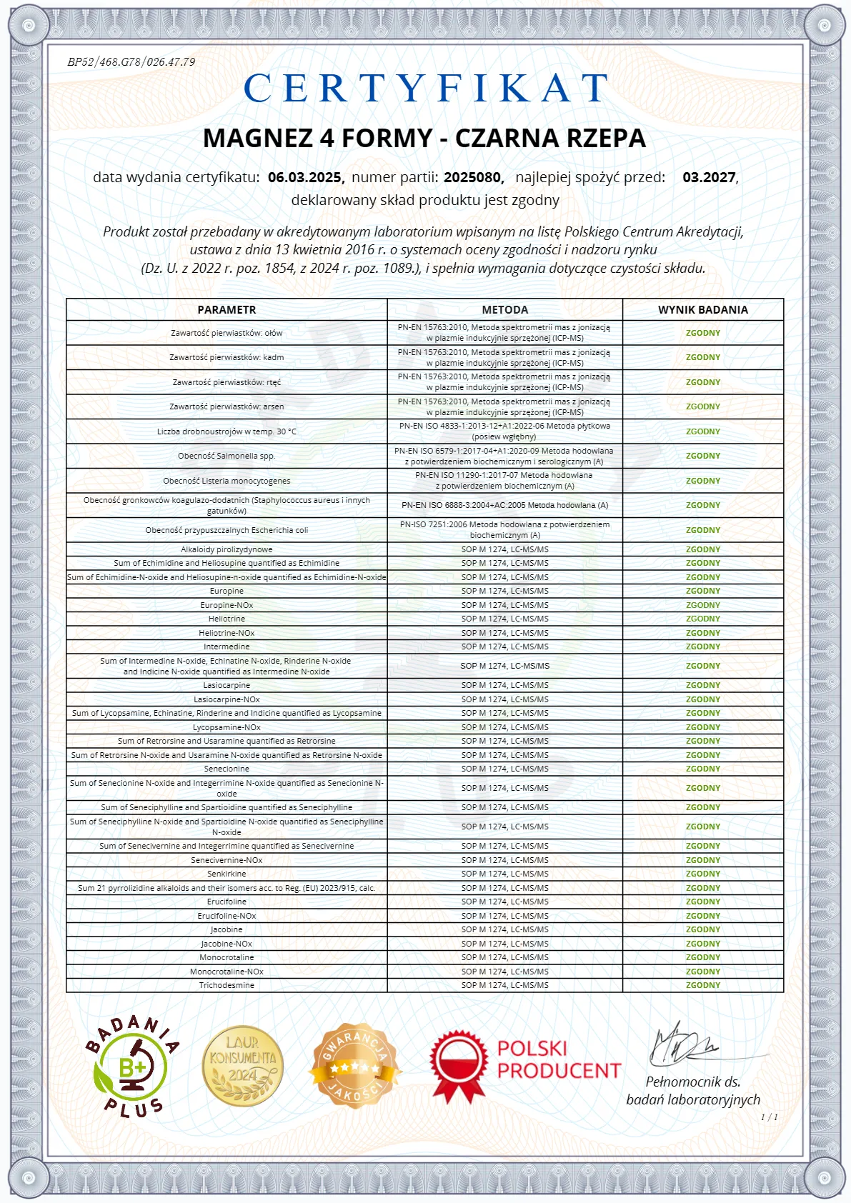 “Badania plus” to znak, który informuje, że produkt został przebadany laboratoryjnie (tylko i wyłącznie w laboratoriach akredytowanych) oraz spełnia wymogi czystości składu i zawartości. W Państwa ręce trafiają tylko produkty, których wyniki są w 100% pozytywne.