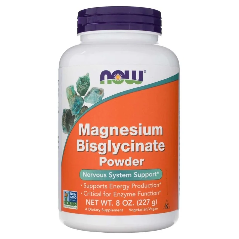 Magnesium Bisglycinate Powder marki Now Foods, to suplement diety w proszku zawierający magnez w formie diglicynianu magnezu (TRAACS®).