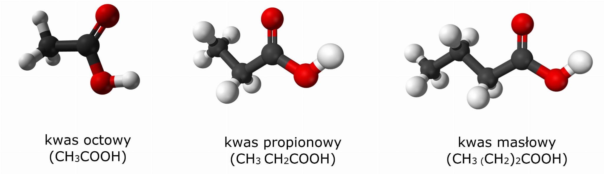 Największy (~ 80%) udział w SCFA obecnych w układzie pokarmowym człowieka mają 3 rodzaje kwasów: octowy, propionowy i masłowy występujące w dość stałych proporcjach: 60:25:15.