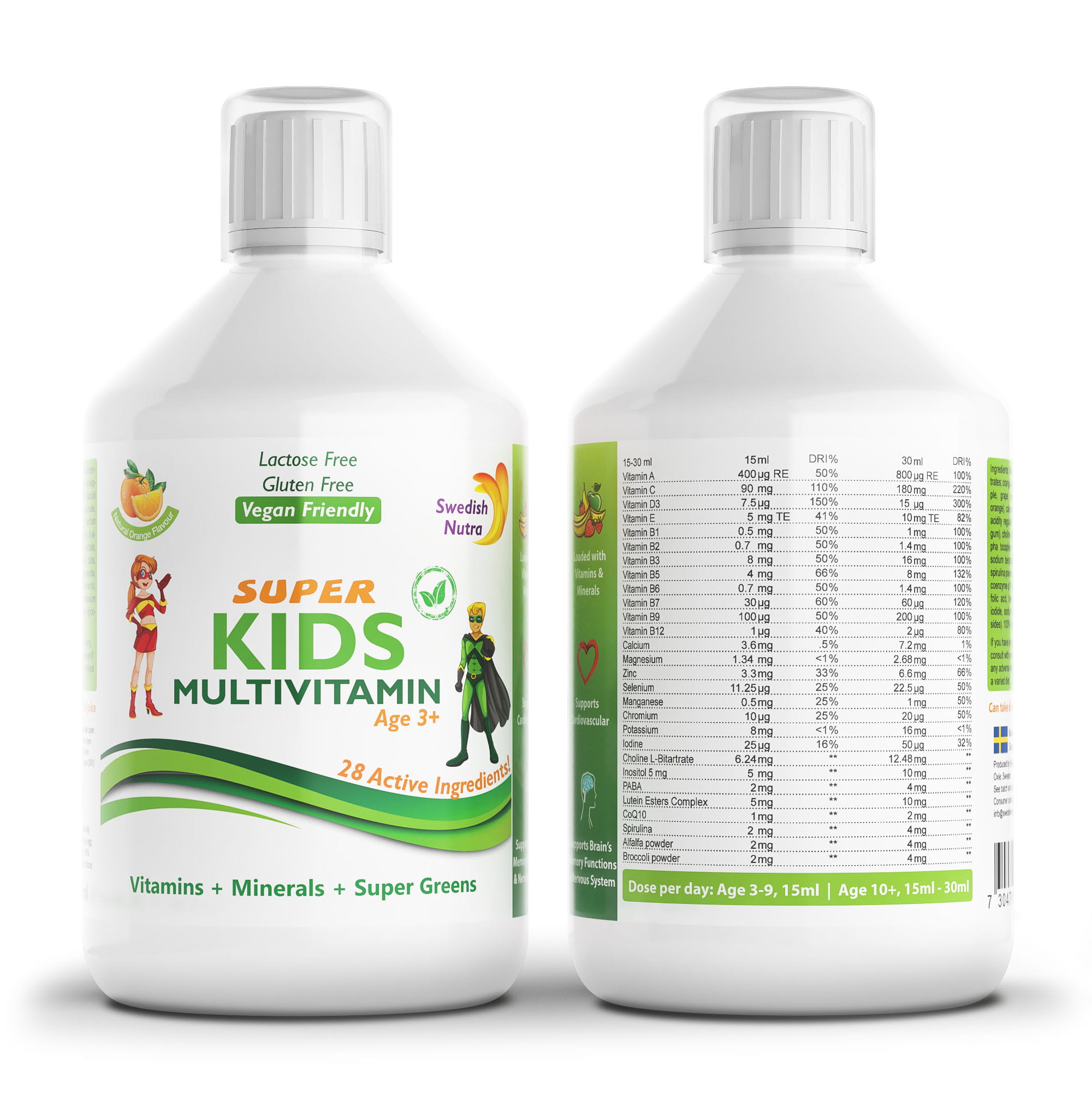 Produkt jest przeznaczony dla dzieci w wieku powyżej 3 lat. Płynna formuła suplementu oraz jego naturalny pomarańczowy smak ułatwiają spożycie przez dziecko. Produkt jest bogaty w minerały oraz witaminy wspierające prawidłowy rozwój młodego organizmu